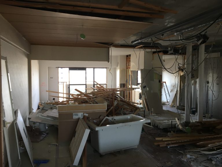 ここからの廃材搬出が大変。図面では分からなかった納まりも見えてきた。