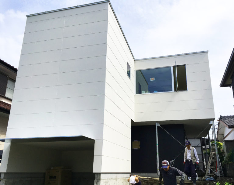 足場が 2018-06-22 by CAPE design 取れました。今回はコストを抑えるため塗装済みサイディングを外壁に採用してます。一部には工事店の倉庫に眠っていたサッシや外壁も使って材料費を落としています。