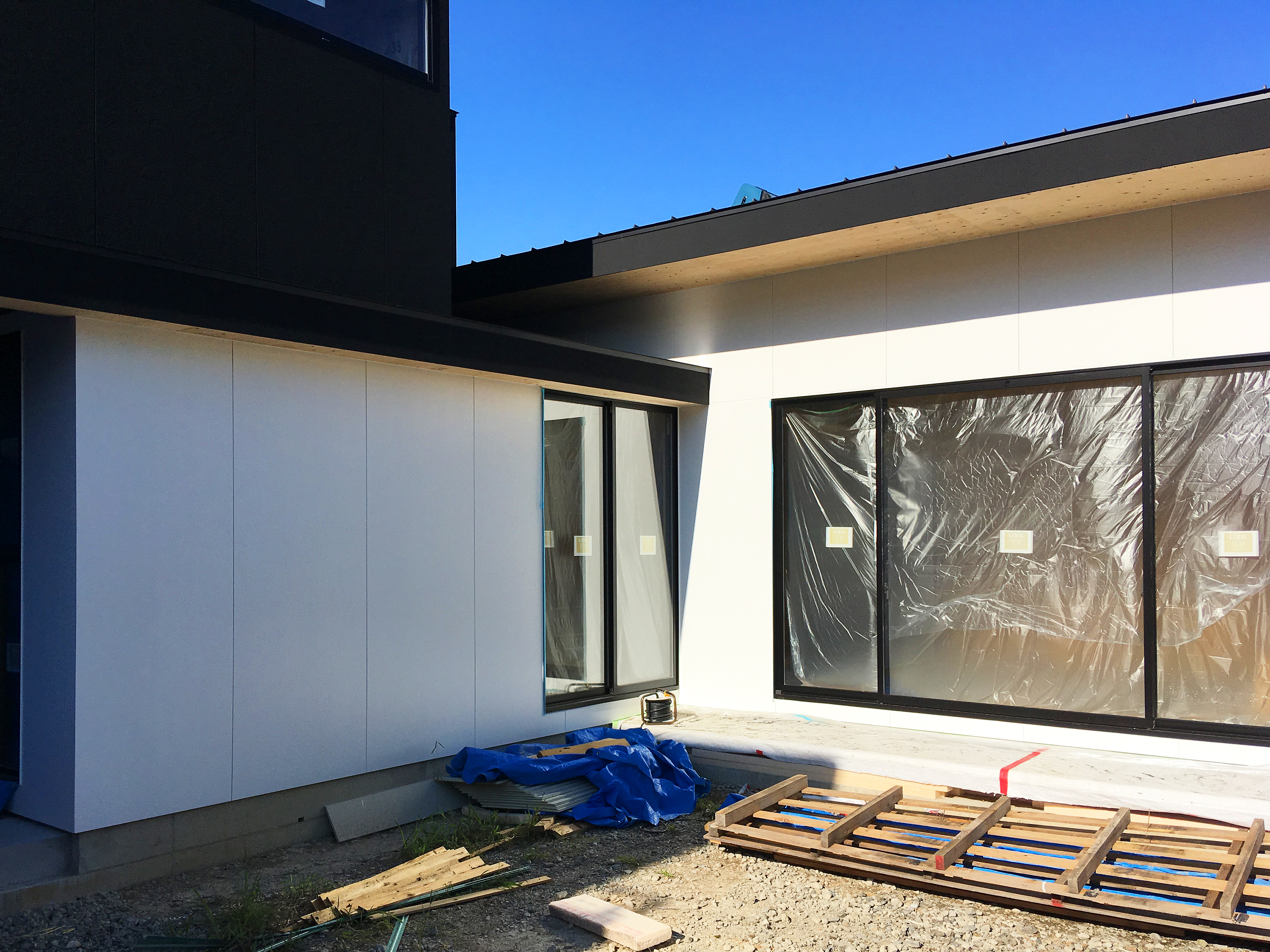 階段の踏み板を支えるササラ桁が取り付いてました。納品前に傷があったので作り直して頂いて・・・。工期はギリギリとなりましたが、工場で塗装されて納品された桁は仕上り抜群。