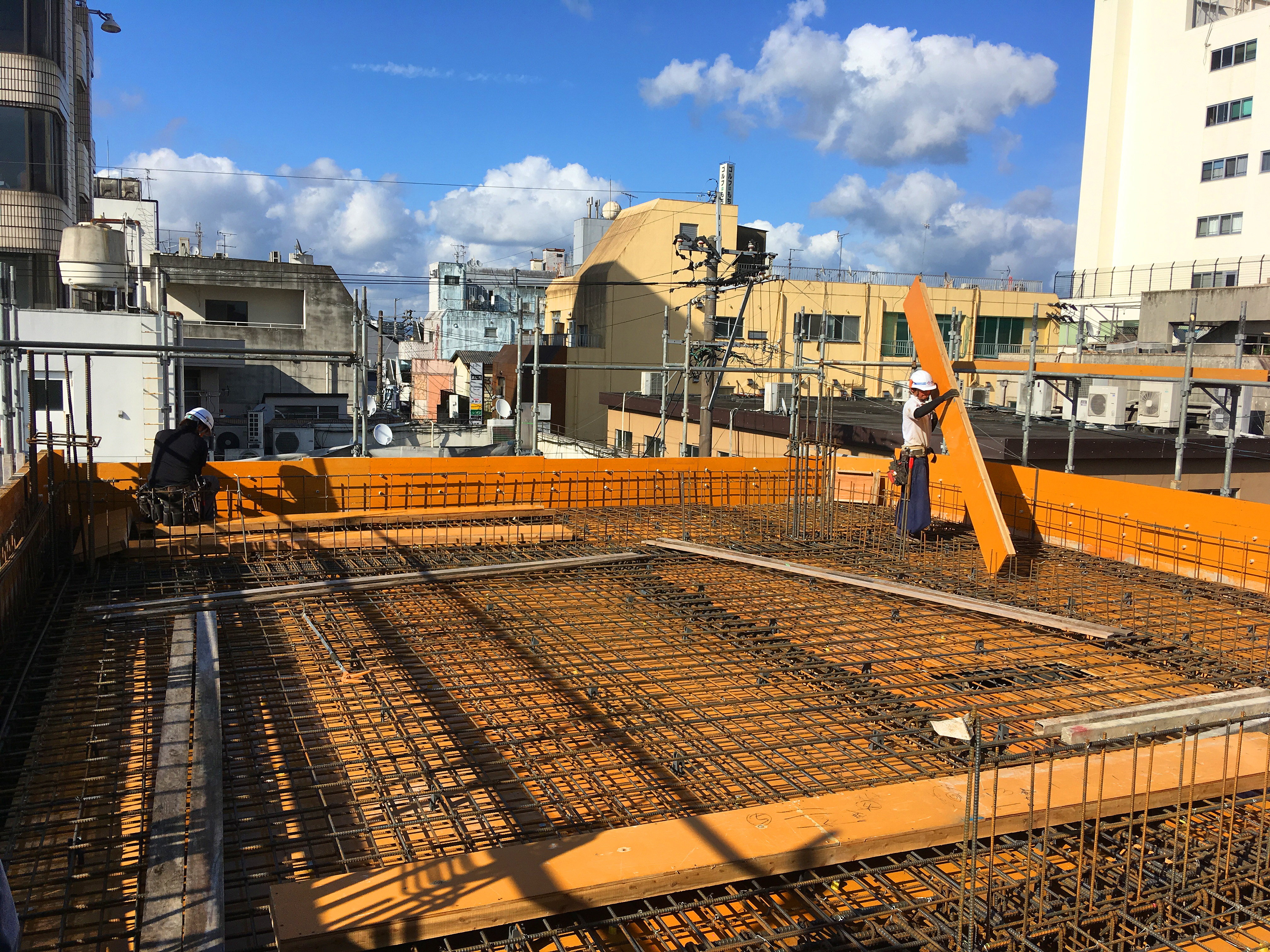 の配筋検査。高い所が苦手なので足場を使ってここまで登るだけでも脚がガクガク。