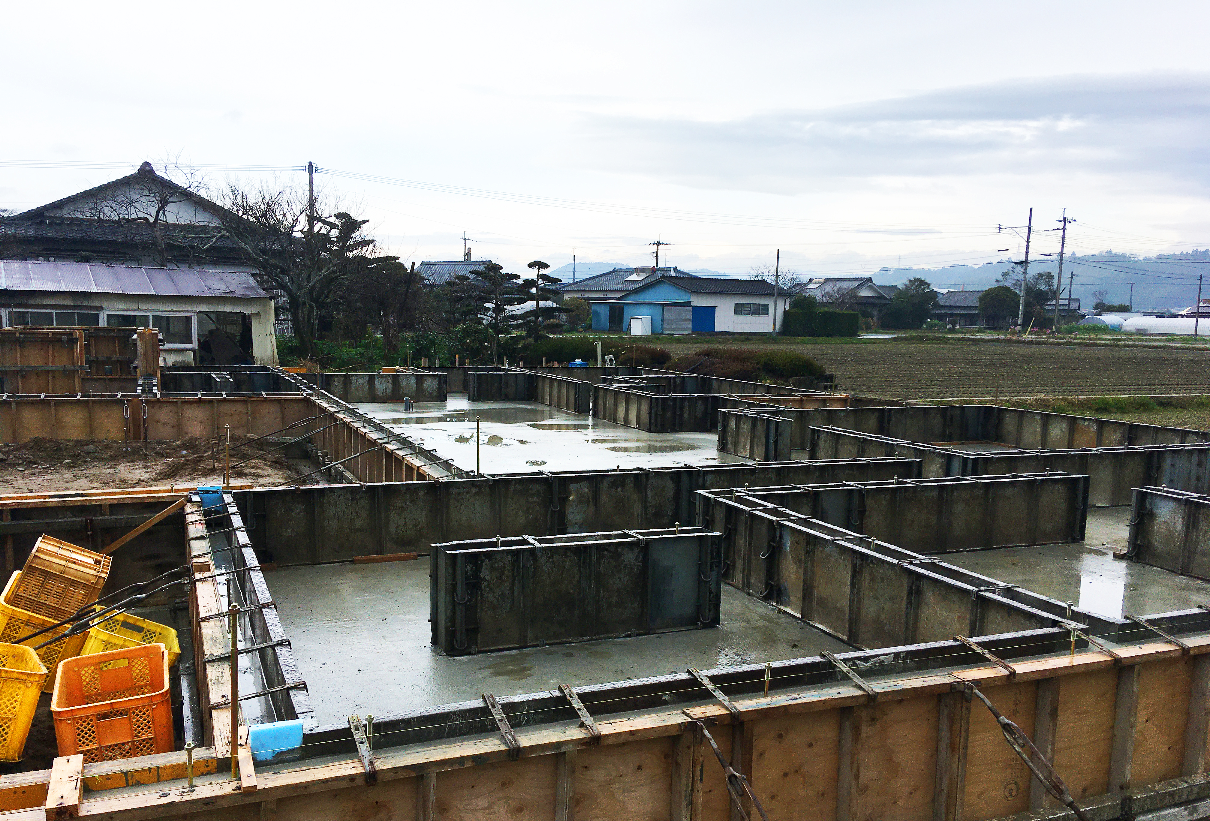 が完了しました、天候次第ですが上棟を待つのみ。伸びやかな平家になる予定です。