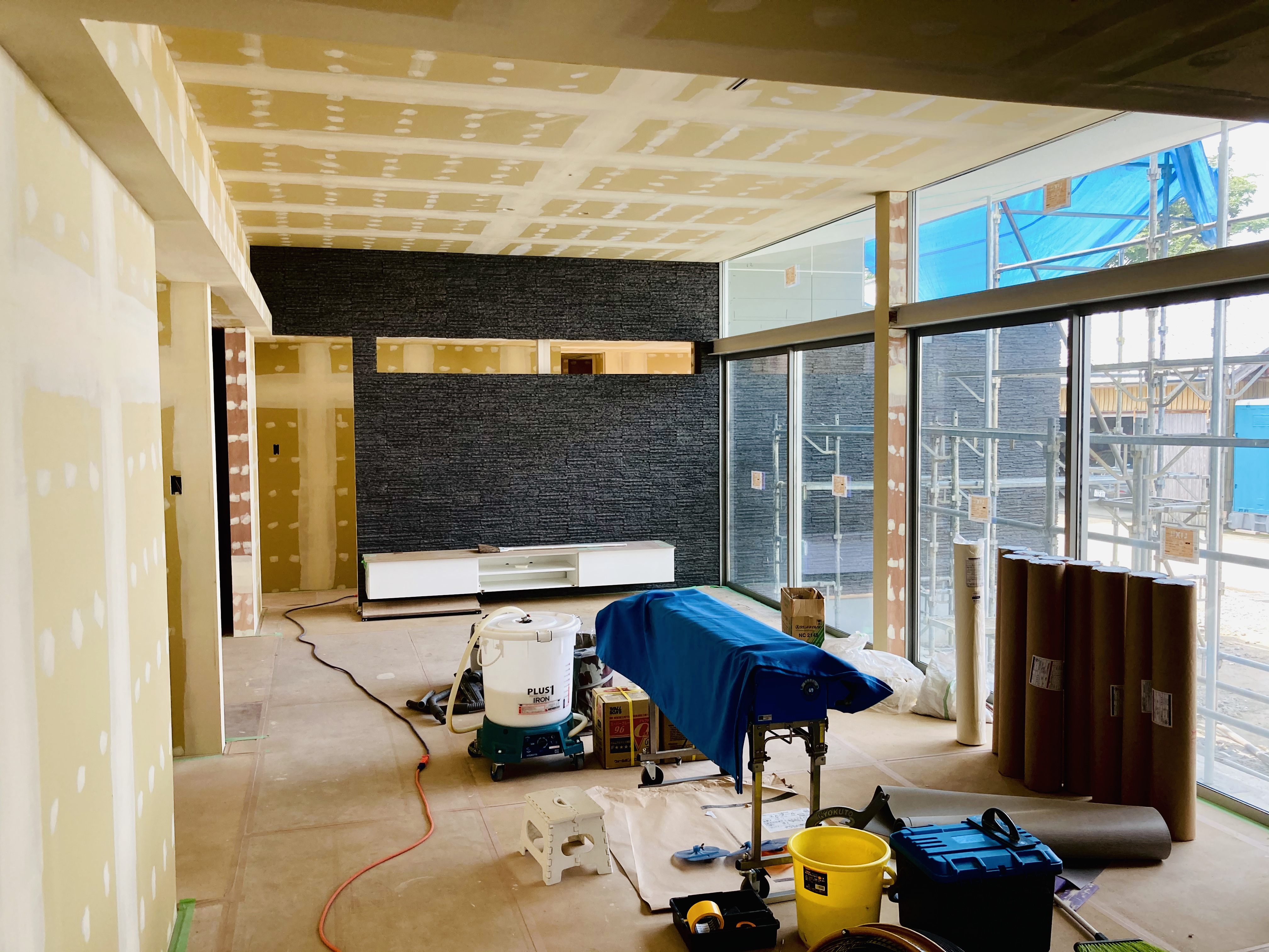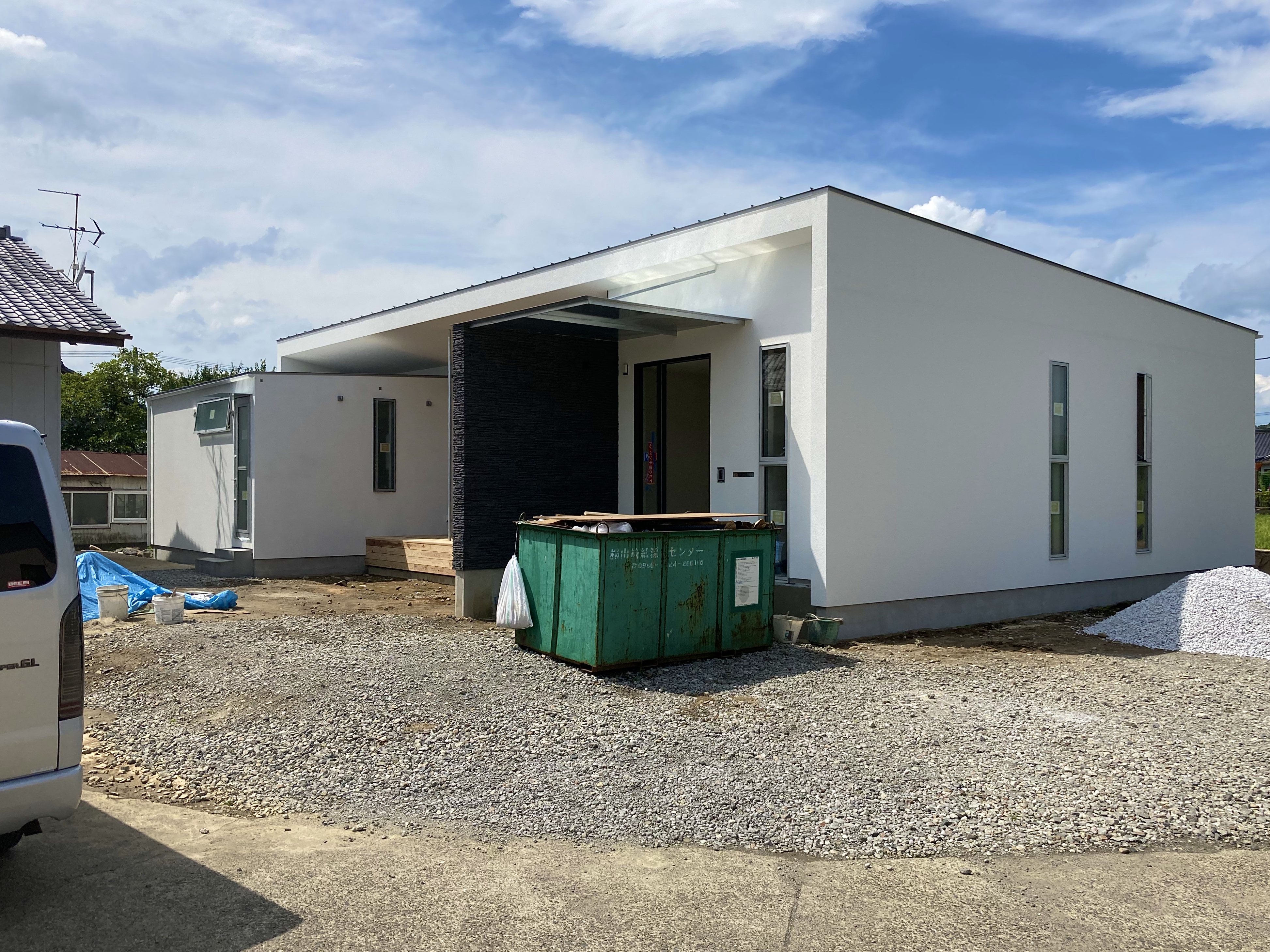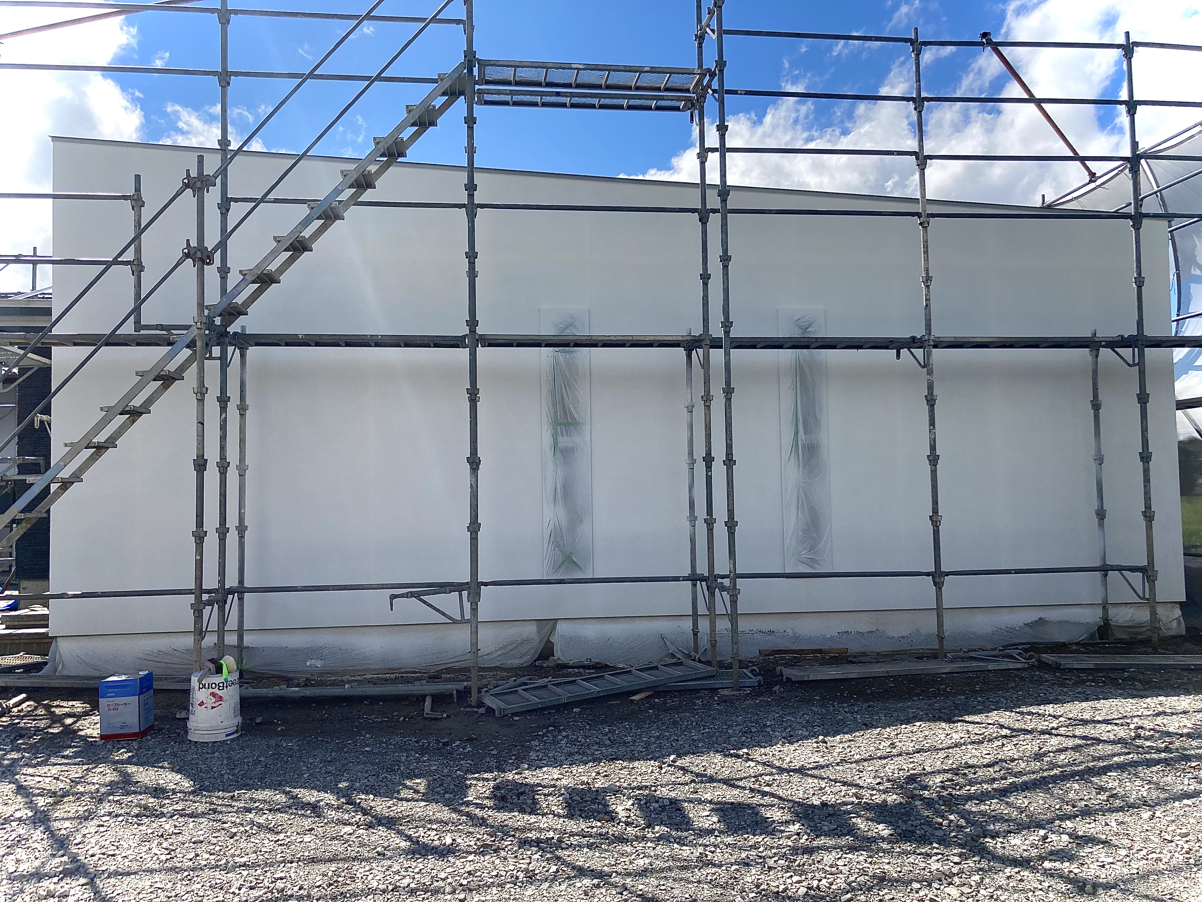 悩みながら建築主様と選んだ外壁の色。潔い真っ白な建物がもうすぐ完成します。