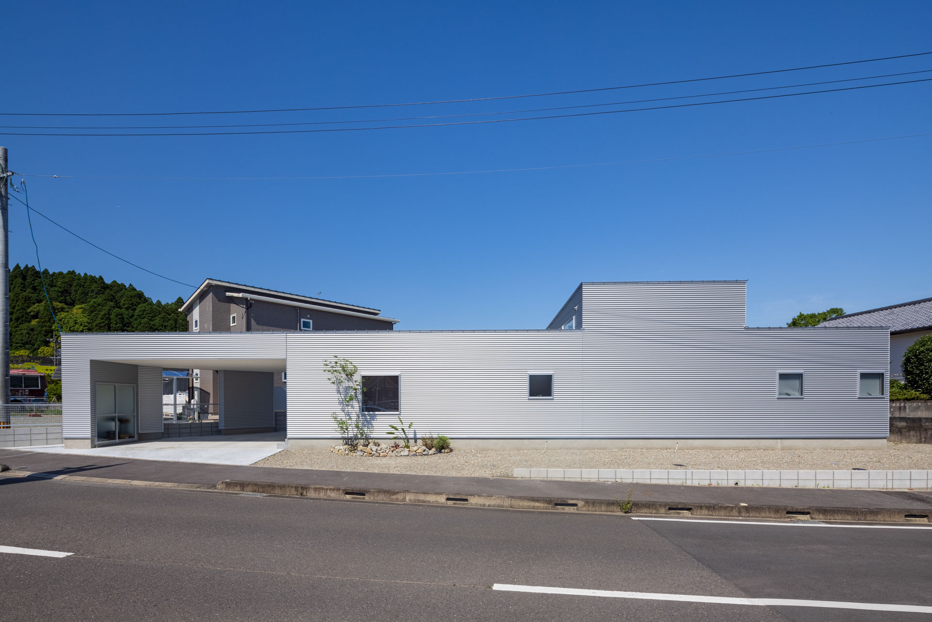 ガルバリウムの波板が印象的です。